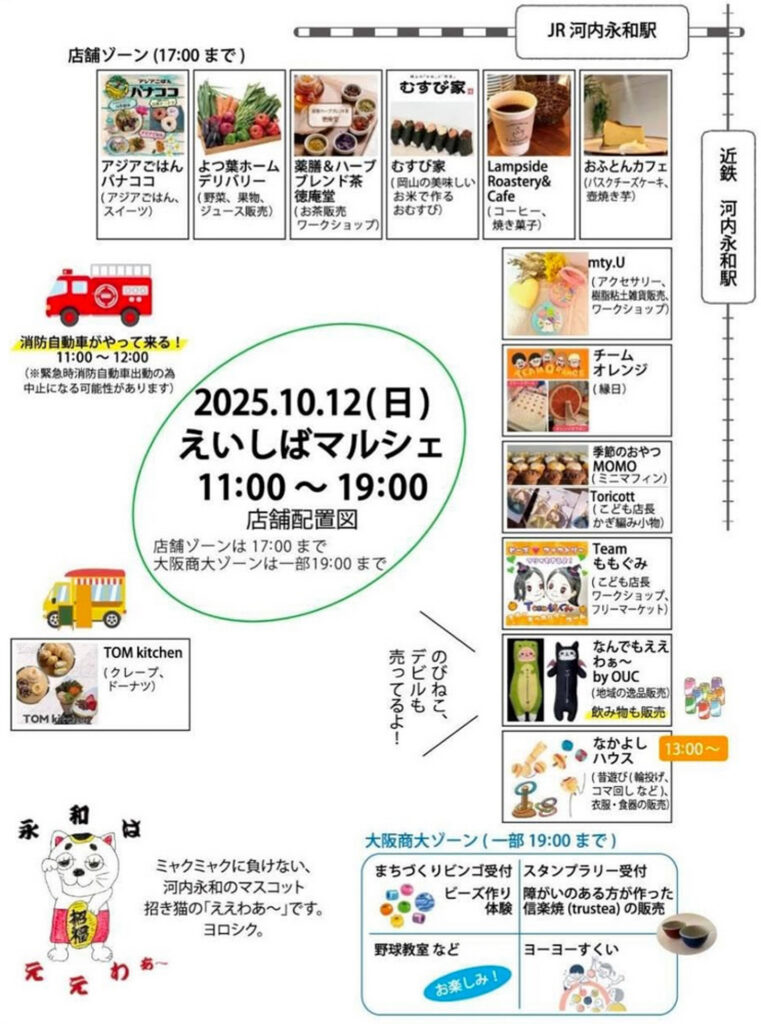 JR&近鉄の河内永和駅前広場で永和駅前商店会さんと大阪商業大学の学生さん達のコラボ主催