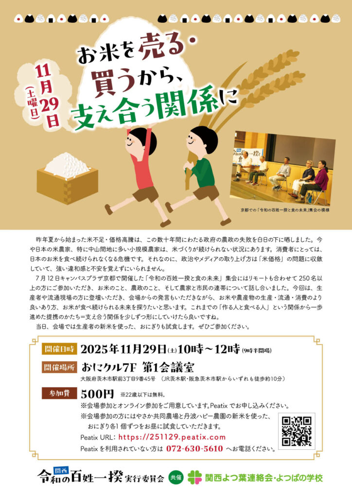 共催:「関西・令和の百姓一揆」実行委員会と関西よつ葉連絡会・よつばの学校