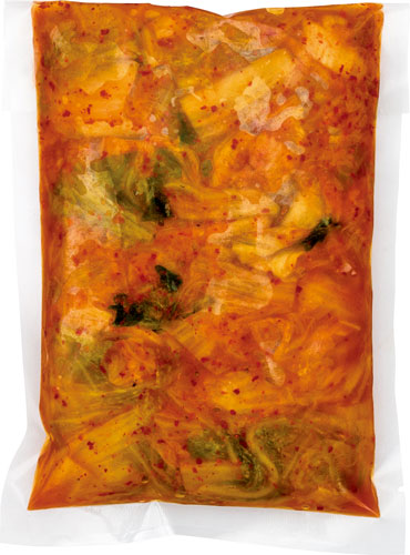 原材料:白菜(国産)、大根、にんじん、にら【漬けだれ】果糖ぶどう糖液糖、食塩、唐辛子、りんごピューレ、発酵調味料、魚介エキス、醸造酢、おろしにんにく、にんにく、しょう油、たん白加水分解物、おろし生姜、魚醤/調味料(アミノ酸等)、酸味料、増粘多糖類、着色料(カロチノイド色素)