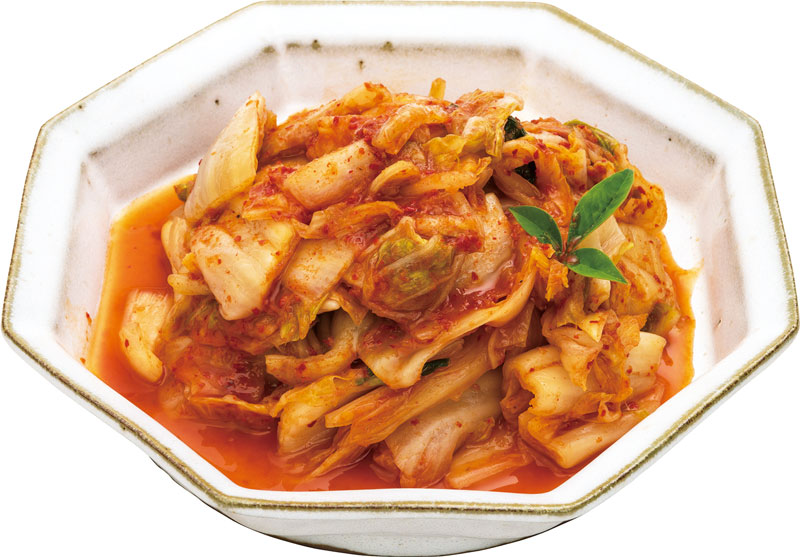 キムチは、白菜などの野菜を唐辛子、にんにくなどの香辛料と魚介の塩辛で漬け込んだ朝鮮半島がルーツの発酵食品です。漬ける過程で植物性乳酸菌が繁殖し、時間が経つにつれて発酵が進んでゆき、酸味が増して複合的な味わいが深まっていきます。食べると腸内環境を整えてくれるのも、この乳酸菌の働きです。