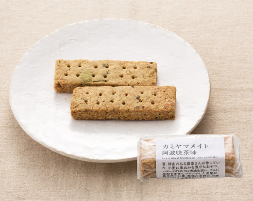 自社農園の米粉と米ぬかを使った素朴な焼き菓子。阿波晩茶の香ばしい風味が加わりました。