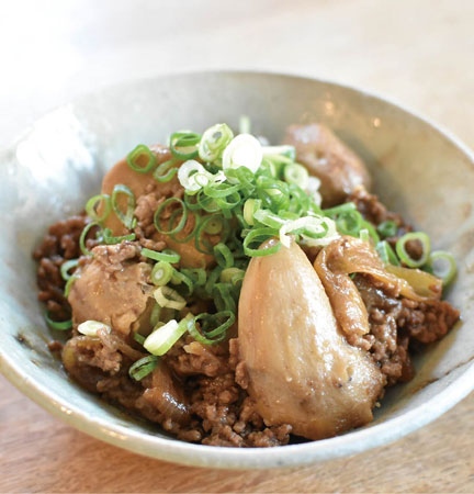 里いもが柔らかくなり煮汁が少なくなれば、Bを加え大きく混ぜる。器に盛り、刻みねぎを散らせば完成。