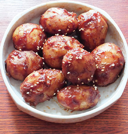 小粒の新じゃが芋 約500g、味噌・砂糖 各大さじ3、食用油 適量、白ゴマ 適量