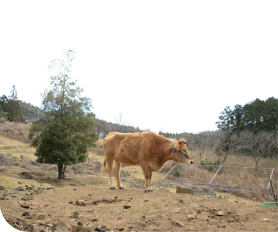 日本では国産飼料のみで肉牛を飼育することは大変難しく、輸入に頼らざるを得ないのが現実です。しかしよつ葉の能勢農場では、こうした現状を少しでも変えようと、よつ葉の豆腐工場のオカラを粗飼料に加えたり、田んぼから稲ワラを回収して粗飼料にするなど、飼料の地域内循環を進めています。そして、できるだけ抗生物質などに頼らず、ストレスを少なくして自然で健康な肉牛を1ヶ月齢から最終肥育まで一貫して育てています。