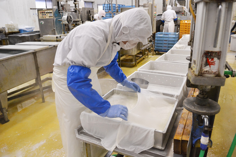 国内産契約栽培大豆100%にこだわった食品工場での豆腐・お揚げの製造補助。