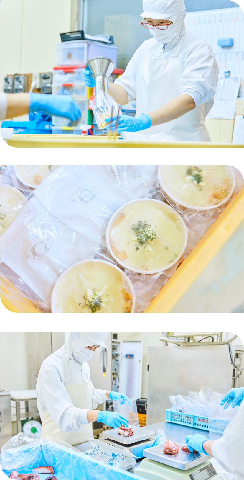 一般的な惣菜品に添加物はつきものですが、大北食品では会員の皆さまに安心して食べていただけるよう、化学調味料や保存料は使っていません。食品の知識を駆使して、添加物なしでもおいしい惣菜を作ってお届けしています。