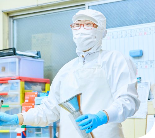 スタッフは30代から50代と若く、思ったことを遠慮なく言いあえる働きやすい職場です。私が工場長になってからは、何よりもスタッフ同士のコミュケーションを大切にしており、スムーズに仕事が流れるようになりました。