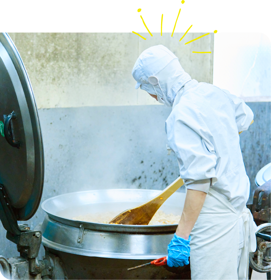 食べることも作ることも好きな人に来てもらいたいですね。300人、400人分を作るのでやりがいもあります。いろいろな作業があるのも面白いですし、社内の雰囲気もいいので、楽しく仕事ができると思います。