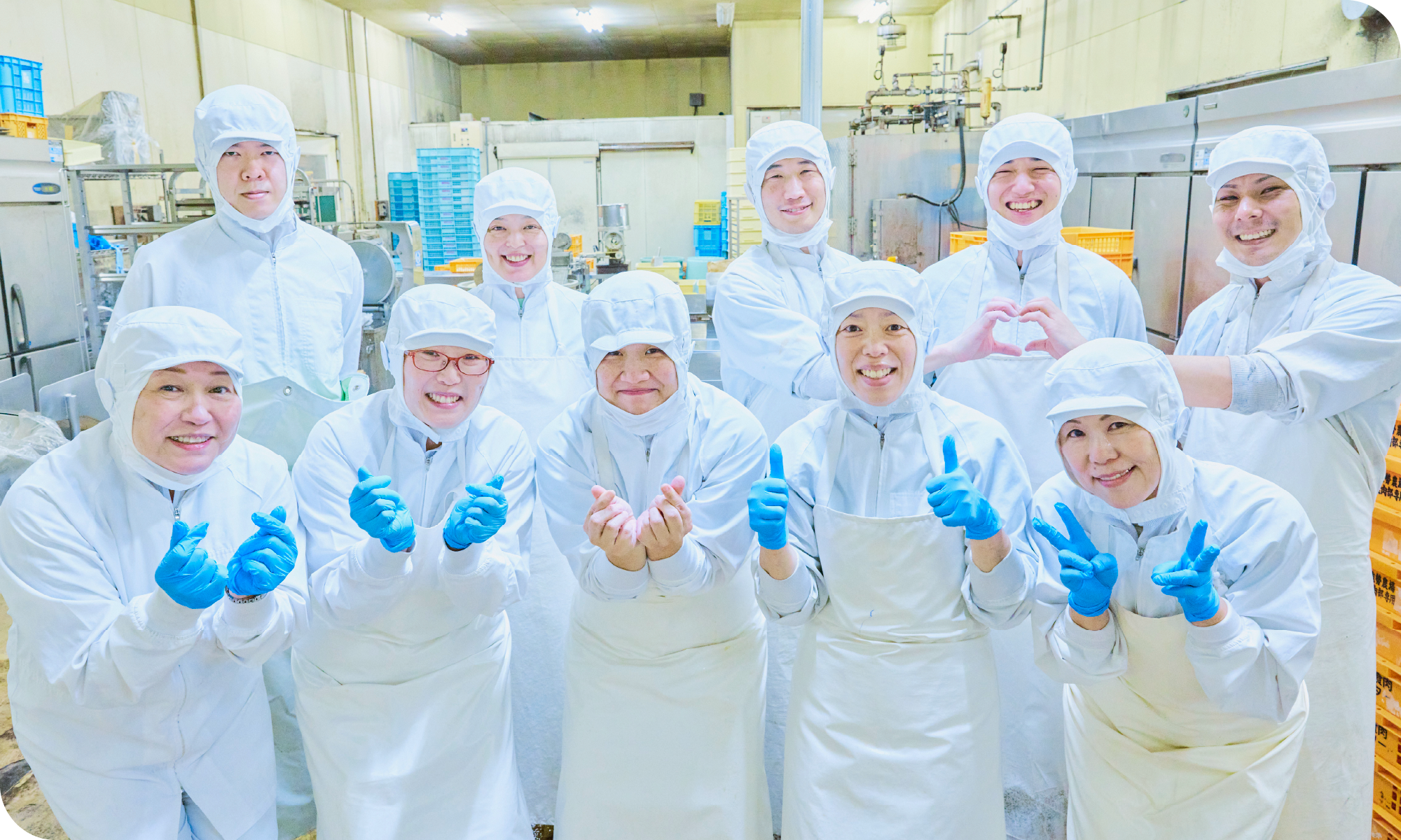 おいしいものや安心・安全にこだわる人。商品開発はものづくりが好きな人も向いています。自分のアイデアが形になり、お客様に喜んでもらえるとうれしいものです。子育て中のお母さんにも適した職場環境ですし、若い方にもぜひ来てもらいたいと考えています。また、自然豊かな場所に会社があるので、自然を楽しめる人にもおすすめ。ホタルや星がきれいで日々癒やされています。