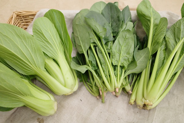 定番の葉物野菜のチンゲン菜、ほうれん草、こまつ菜も冷えていますが、