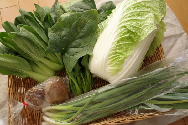 内容は、菜の花、のらぼう菜、白菜、ほうれん草、チンゲン菜、青ねぎ、