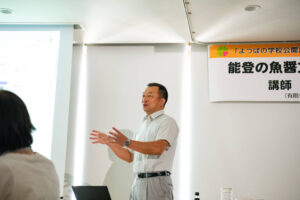 私は普段、ライフのカタログ撮影の現場でフードスタイリストとして調理、盛りつけなどを担当させていただいております。この度、よつばの学校「能登の魚醤文化について深く学ぶ」という講座にてカネイシさんのいしりを使ったお料理を提供させていただくことになり、私自身、関西出身で知識も乏しかったので詳しくお話を聞けるのを楽しみにしていました。また度重なる自然災害と向き合ってこられたお話や先を見る希望のお話も伺うことができ、大変貴重な機会をいただきました。